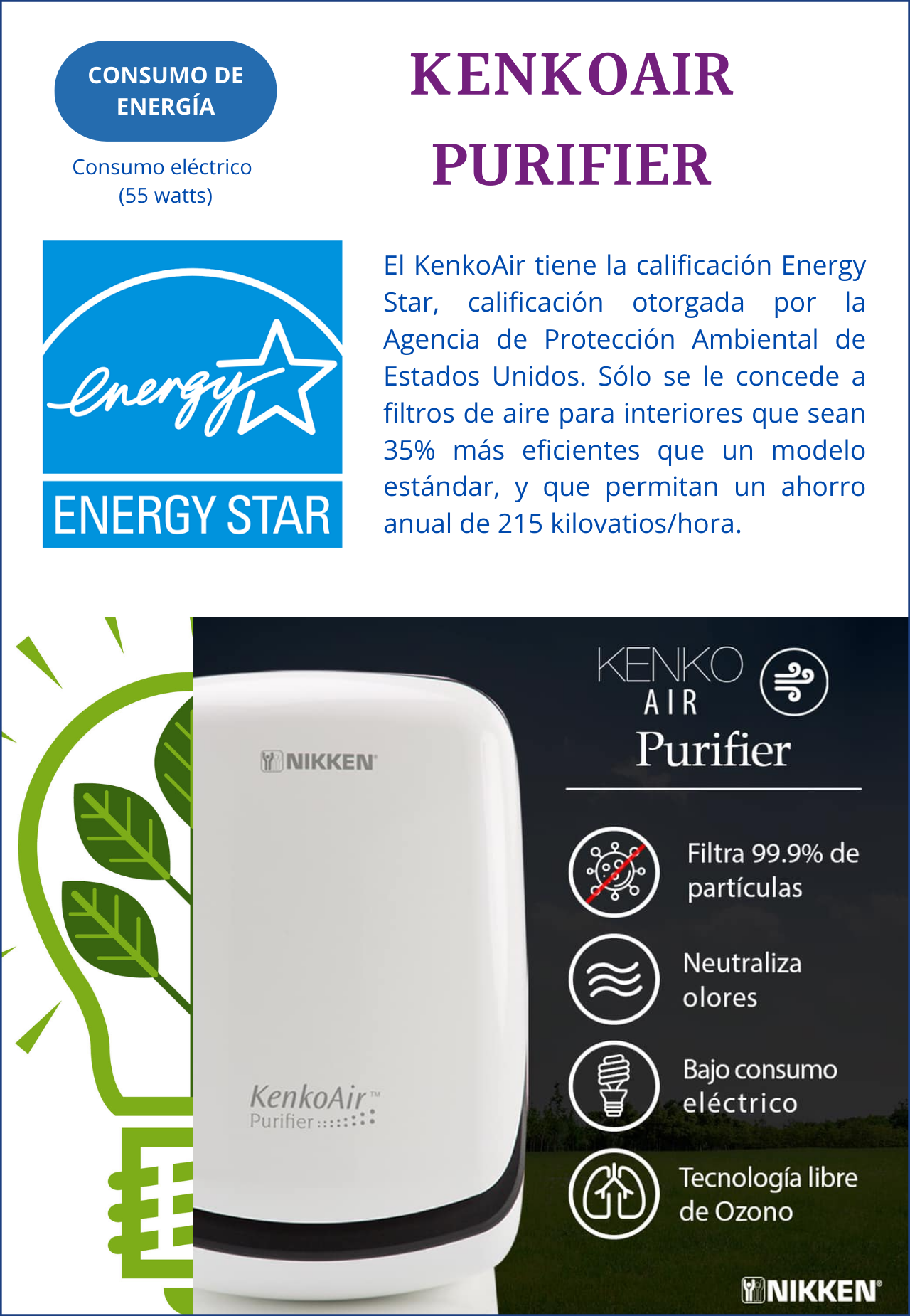 El KenkoAir tiene la calificación Energy Star, calificación otorgada por la Agencia de Protección Ambiental de Estados Unidos. Sólo se le concede a filtros de aire para interiores que sean 35% más eficientes que un modelo estándar, y que permitan un ahorro anual de 215 kilovatios/hora.